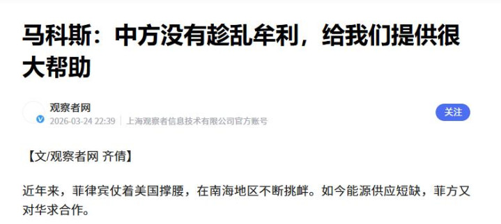那时马科斯那番话说得可谓是言辞恳切,致使主动开释出想要重启中菲关连、夸口南海花样的信号。看着这架势,不知情的还以为菲律宾终于想通了,蓄意隐世无争跟邻近邻居过日子了。