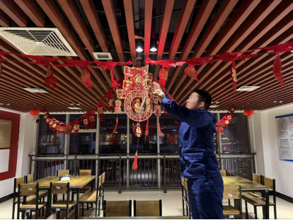指战员皆入手挂灯笼、贴对联、装束营区,处处张灯结彩,年味浓厚,让遵从更有温度。