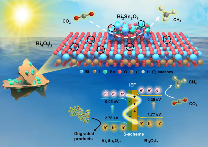 团队用二氧化钛与金纳米颗粒构成催化剂:二氧化钛和金颗粒的界面是空穴陷坑,金颗粒是电子陷坑。