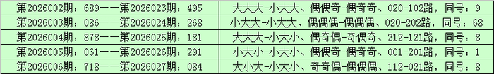 所以,排列三第2025215期奖号:695,与排列三第2026028期奖号可能没有同号。或者排列三第2026028期奖号大小比、奇偶比和012路比可能与第2025215期奖号直选形态:大大大、偶奇奇和002路不全部相同。