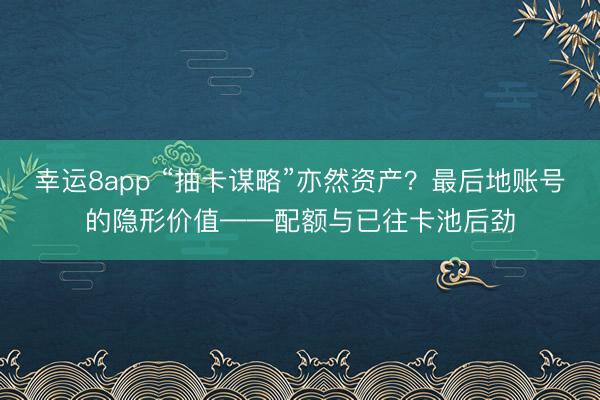 幸运8app “抽卡谋略”亦然资产?最后地账号的隐形价值——配额与已往卡池后劲公测红利期必看!最后地抽卡谋略=账号隐形金钱,来回避坑指南在此 跟着《明日方舟:最后地》群众公测下载量冲突3000万大关,官方紧迫披发10连抽“起程酬金礼”提振热度,账号来回阛阓也同步迎来爆发期。无边玩家仍漠视“抽卡谋略”的紧要性,但内容上,它不仅决定你能否拿握现时版块热点干员埃特拉,更是账号隐形价值的中枢锚点——而这份价值,正