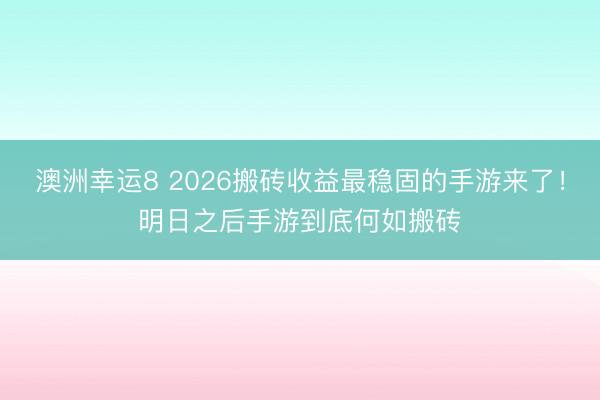 澳洲幸运8 2026搬砖收益最稳固的手游来了!明日之后手游到底何如搬砖如今,游戏变现的旅途日益豁达,好多玩家渐渐意志到,通过游戏代练与假造谈具往来,大约挖掘出特别可不雅的收入空间。 在互联网深度融入本质确当下,这已是一条兼具稳固性与成长性的副业采纳。 不管你是刚尝试游戏变现的新东谈主,也曾已有教训的老手,要想在此领域继续取得收益,最枢纽的一步即是遴选一个符合历久参加的游戏场所。 为此,本文将以热点