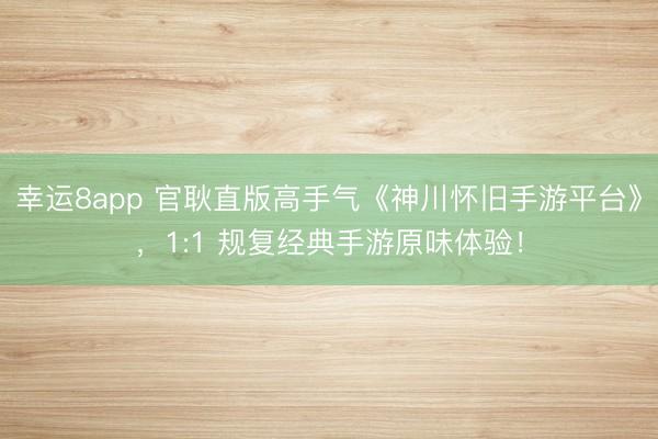幸运8app 官耿直版高手气《神川怀旧手游平台》,1:1 规复经典手游原味体验!手游市集新品迭代倾盆,玩法同质化的问题愈发突显,而那些烙迹着芳华缅念念的经典游戏,恒久是玩家心中无可替代的白蟾光。神川怀旧手游平台精确捕捉这份心扉诉求,集聚多款正版授权、1:1 复刻的经典 IP 手游,既完整留存端游原作的中枢精髓,更针对移动端深度优化操作体验,让老玩家重拾热血岁月,新玩家恍悟守旧魔力。从快意恩怨的武侠江湖,到广