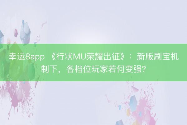 幸运8app 《行状MU荣耀出征》:新版刷宝机制下,各档位玩家若何变强?《行状MU荣耀出征》新版刷宝机制以“高爆有保底、舆图分层适配”为中枢,优化了各档位玩家的成长旅途,无论是侧重成果的进阶玩家,仍是稳步集中的无为玩家,齐能通过精确计谋杀青战力跃迁。变强的关节在于适配本人档位,连合刷宝机制锁定中枢资源,兼顾工作特点与玩法优先级。以下拆解各档位专属变强决策,助力高效安身勇者大陆。 {jz:field.