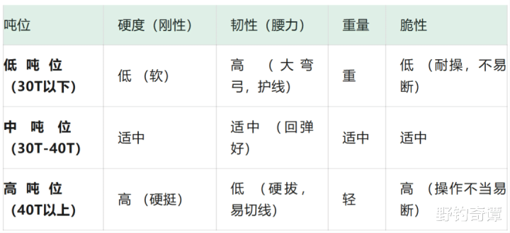 二、吨位“指点棒”,如何傍边鱼竿性能?