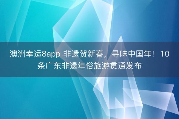澳洲幸运8app 非遗贺新春,寻味中国年!10条广东非遗年俗旅游贯通发布1月26日,由文化和旅游部非物资文化遗产司、中央播送电视总台总司理室、广东省文化和旅游厅、广州市东说念主民政府在广州共同主理的2026年“非遗贺新春·寻味中国年”暨非遗年货购物月“广货行宇宙 好意思食在广东”主题推行在广东省博物馆初始。 在初始现场,首度发布了十条广东非遗年俗旅游贯通。以非遗为纽带,串联全省优质文旅地标、当然景不