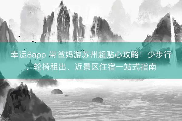 幸运8app 带爸妈游苏州超贴心攻略:少步行、轮椅租出、近景区住宿一站式指南带爸妈游苏州超贴心攻略:少步行、轮椅租出、近景区住宿一站式指南 每逢节沐日,后台总会收到好多一又友的私信,参谋何如带父母父老来苏州玩得松懈又尽兴。全球的牵记尽头具体:爸妈腿脚不如年青东说念主,行程弗成太累;园林里门槛多、路起义,有莫得便利智商?住宿好外出等于景区,省去往复奔跑。手脚在苏州生涯了十几年的旅游从业者,咱们太懂这份孝心
