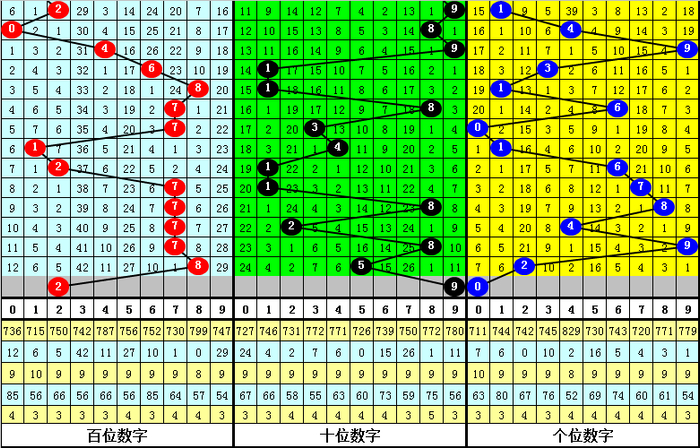 从上表可以看出,组选号码258开出之后,出现次数最多的三个号码分别为:630,本期防这三码中落号;出现次数最少的三个号码分别为:572,本期预计这三个号码不会同时出现,本期杀一码:5。