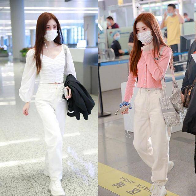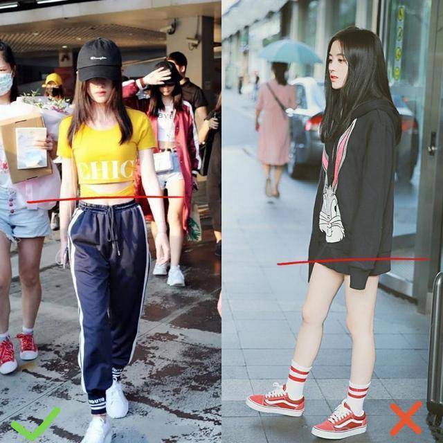 对比鞠婧祎的两组搭配,能显然看出衣品的伏击性。左边:短款上衣 + 高腰通顺裤,搭配白色通顺鞋,失业又具仙女感,腿部比例权臣拉长,完全不像159cm的身高。