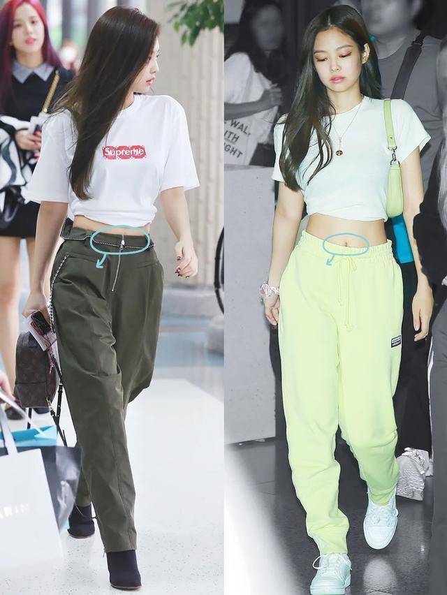 同为小个子的Jennie也钟爱这种穿法,庸碌的T恤配工装裤,加上露肤野心,片刻增添飒爽帅气立场。需留心,一般裤子越高越显腿长,腰身往往在肚脐险峻或过肚脐。