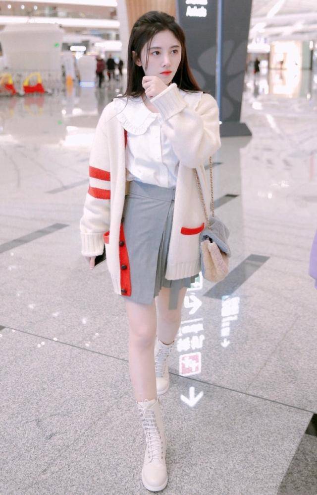 白色娃娃领衬衫 + 灰色不法律诠释剪裁A字裙,配白色高帮马丁靴,外搭米色毛衣,蔼然配色与致密搭配突显高档质感,崭新漂后又带书院名流风,让东说念主缩短。鞠婧祎展现出的“超模腿”和“牛奶肌”,简直令东说念主调度。气温下跌时,可在外面加诚笃开衫,若合计热,可换成镂空或薄纱形态,营造度假痛快立场。