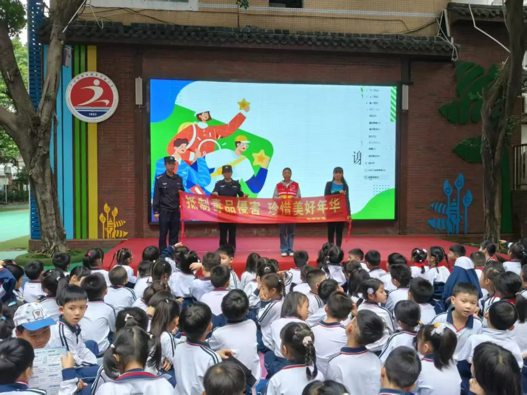 为闲适禁毒示范创建效果,强化学生自我保护意志,擢升其安全防护智力,近日,在海珠禁毒大队的专科带领下,海幢街谈吉祥法治办(禁毒)紧扣辖区中小学校开学机会,勾搭海幢派出所、广州市心明爱社会责任作事中心“启帆之家”海珠区禁毒社劳动事神气,区分走进广州市海珠镇泰实验小学以及广州市第五中学,开展禁毒进校园宣传手脚。