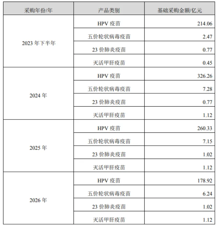 第一,取消基础采购金额,调度采购取代刚性对赌。这是本次调养最具决定性的篡改。2023年1月两边签署的原条约商定,2023年下半年至2026年上半年,智飞生物需完成超980亿元的基础采购,其中2024-2026年HPV疫苗保底采购额分辨高达326.26亿元、260.33亿元、178.92亿元,近乎“刚性对赌”。