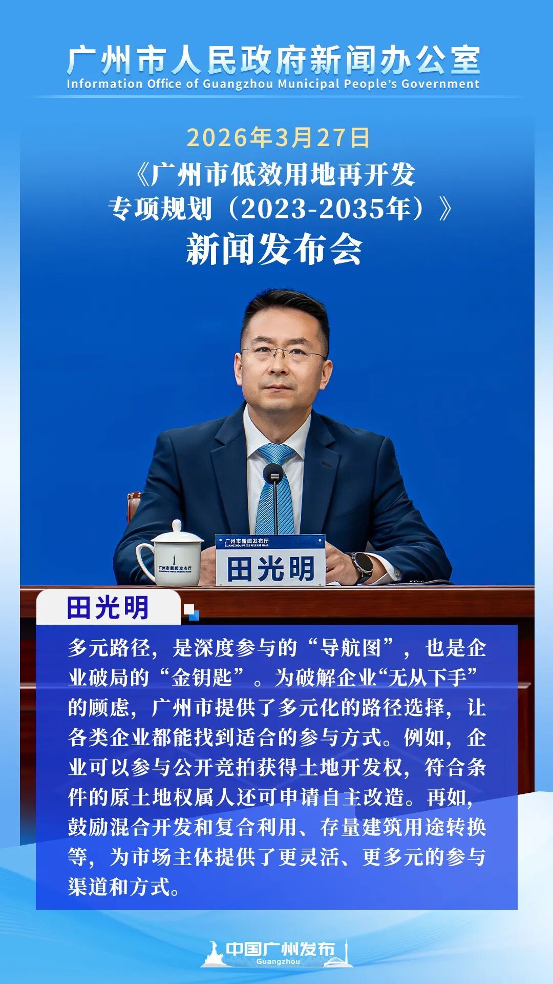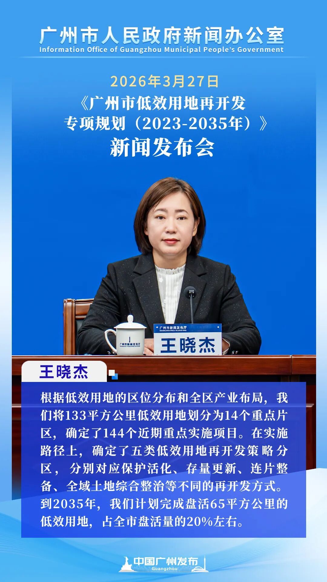 近日,广州市东说念主民政府新闻办公室召开新闻发布会,细密发布《广州市低服从地再开辟专项贪图(2023—2035年)》。