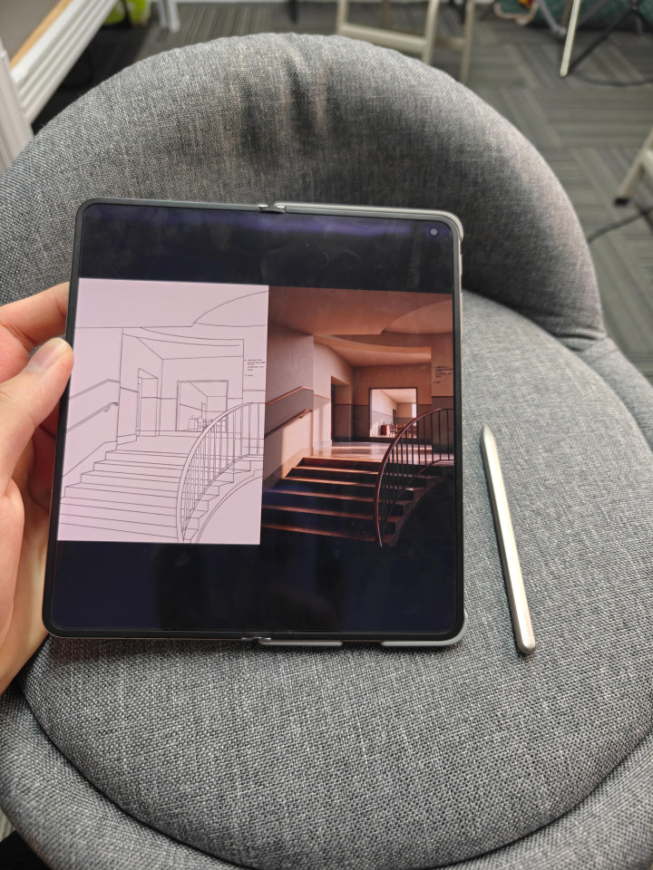 此外,关于需要现场修改决策的盘算推算师,全景解放窗相同实用:一边开着参考图,一边用AI手写笔在草图运用里修改,还能浮窗申报客户音讯,多任务并行不卡顿。