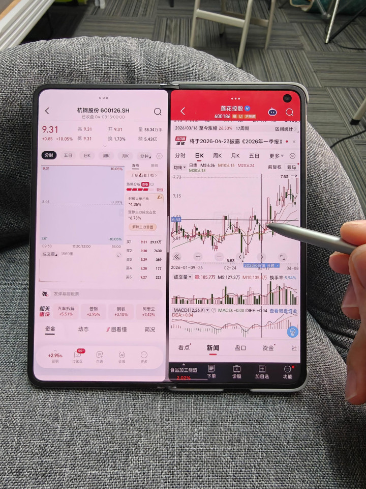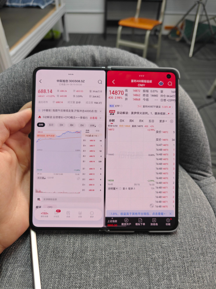 Find N6的全景解放窗,恰是为这种场景而生。它冲破了传统分屏的僵硬畛域,至多复古4个运用窗口同期开启,可解放平铺、堆叠、吊挂。一个窗口看行情,一个窗口读研报,第三个窗口浮着微信——三任务并行,一拉一推即可拖拉治愈窗口大小,四指持放还能在分屏与浮窗间秒切。