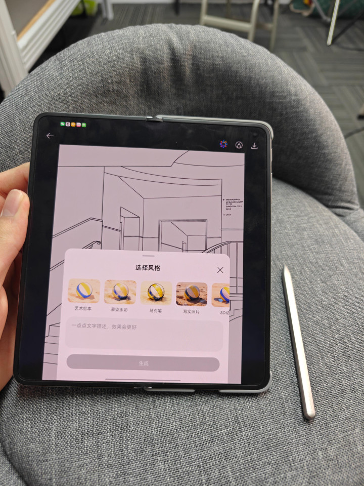 Find N6的AI手写笔提供了全新解法:唾手画的线稿,圈选后一键即可渲染成写实像片、水彩插画、3D动画等多种立场。不仅是草图,装修构想、居品手绘——圈一圈,AI即刻生成可视化完毕图,客户就地就能相识盘算推算意图。