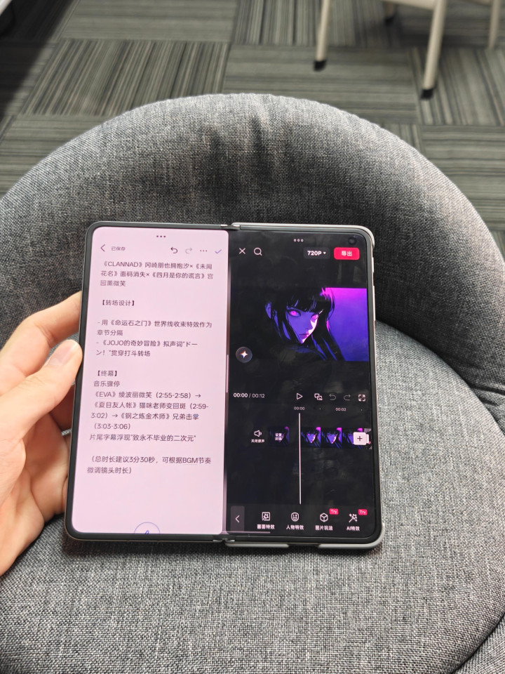 关于自媒体创作家来说,Find N6等于「移动责任室」,从拍摄、编著到发文,全过程一台手机贬责。傍边分屏同期稽查剧本和视频编著,效劳拉满。