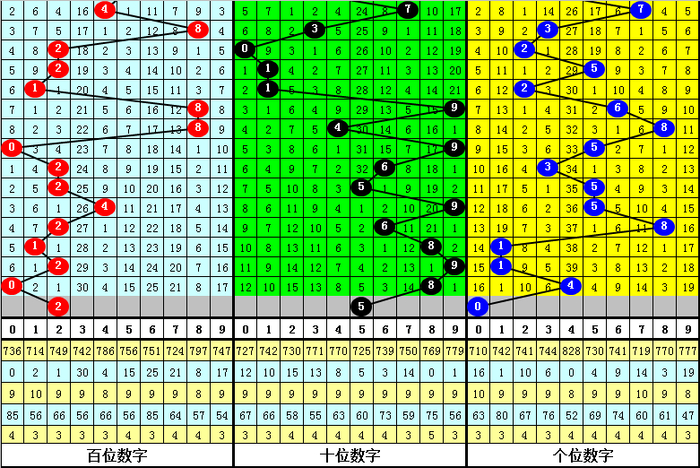 十位走势:最近10期开出范围在4-9区段,跨度为6点,出号比较分散,上期出现号码8,下降1点,本期预计该位走小。另外,最近10期该位奇偶比为5:5,奇数走冷,本期预计奇数回补,参考号码5。