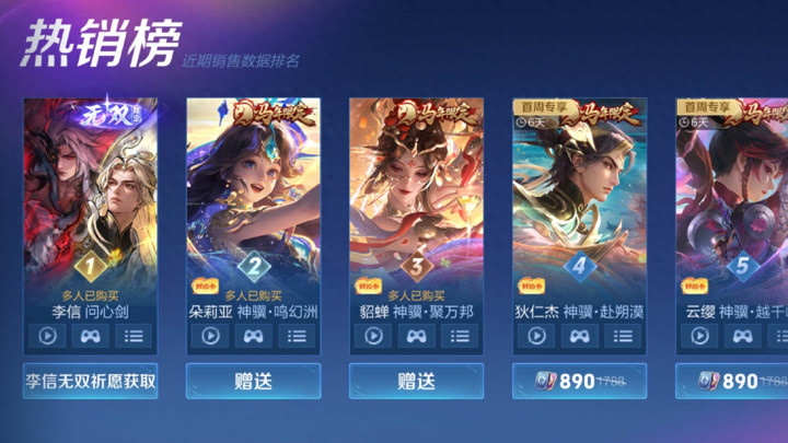 如上图所示,可以看到现在销量最高的皮肤是李信的无双截止,这款皮肤的销量排在第一。