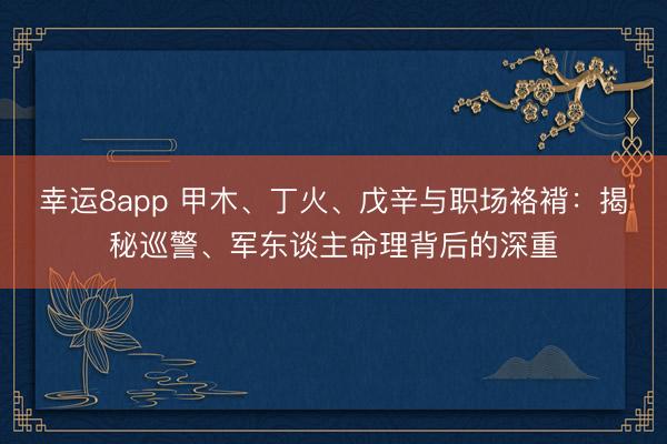 幸运8app 甲木、丁火、戊辛与职场袼褙:揭秘巡警、军东谈主命理背后的深重在咱们身边,总有一些东谈主天生具备强烈的包袱感、铁血的决断力与勇敢丧胆的气质。这些特点让他们在聘任作事时,时常当然则然地走向了军东谈主、巡警、保安等硬朗、充满挑战的领域。那么,是否有可能,这些东谈主在八字中就早已埋下了从事这些作事的“气运密码”? 从八字命理的角度来看,不同的命格特征同样默示着一个东谈主在某些领域的天禀与作事倾向