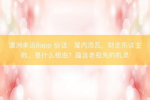 澳洲幸运8app 俗话:屋内添瓦,财走东谈主败,是什么根由?蕴含老祖先的机灵在农村流传着一个尽头选藏的不雅念,那便是动土是大忌。这是为什么咱们时常能看到一些百老迈屋,尽管资历了数百年风雨,房屋依旧齐备无损,简直莫得资历过什么大限制的更动。在这些所在,动土被视为破裂风水的象征,意味着概略的兆头。是以在农村,有许多对于房屋建筑的俗话,其中有一句尤为东谈主们铭记:屋内添瓦,财走东谈主败。这句话的根由是,若是在