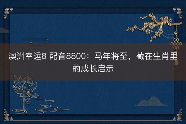 澳洲幸运8 配音8800:马年将至,藏在生肖里的成长启示岁末寒风渐暖,年味悄然浸润火食东说念主间,2026丙午马年的脚步毅力相近。在中国生肖文化中,马从来不啻是奔腾的生灵,更是承载着执意、奋进、目田与忠诚的精神图腾。从《周易》“天行健,正人以自立不息”的哲念念,到“马到到手”的祯祥盼愿,这匹普及千年的灵兽,藏着最朴素也最有劲量的成长启示,素养咱们在新岁里顺服前行。 {jz:field