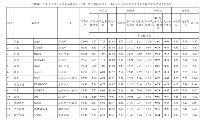基于全网品牌评分,商讨东谈主员还计较出了每个季度中国线上蹧跶者购买品牌商品的对等分,形成了中国线上蹧跶品牌指数,也即是CBI,而每个季度评分最高的500个品牌,也就当然形成了全球品牌中国线上500强,也即是CBI500榜单。