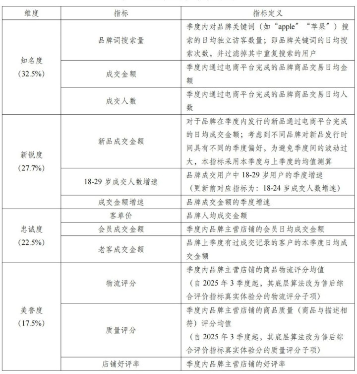 这组数据的背后,是北京大学国度发展商讨院以淘宝天猫上的蹧跶行动大数据为基础,用科学模子制定出的 “长入评分体系”——基于淘宝天猫10亿用户的真奉行动数据,从闻明度、新锐度、诚心度、好意思誉度4大维度拆解出12个中枢看法,用算法加权为每个品牌打出精确评分。