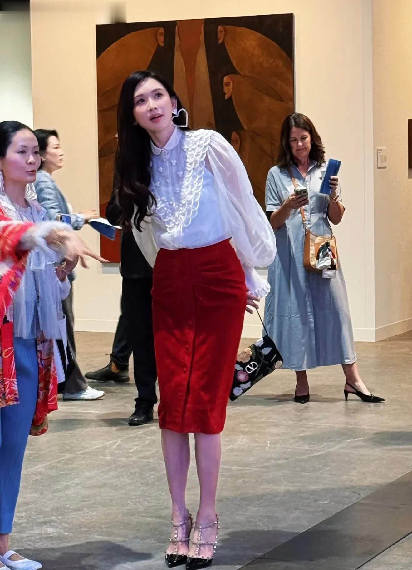 拎着铆钉包脚踩高跟鞋,高挑纤瘦的身形极少不像51岁!耳朵上的爱心耳环更是戳中东说念主心!