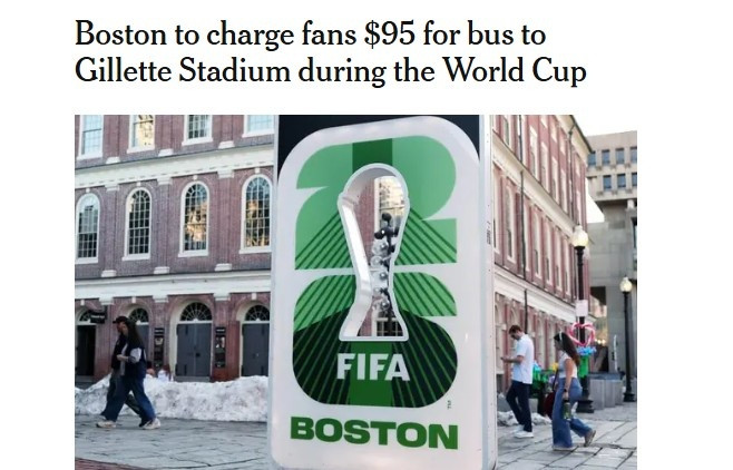 活着界杯时辰,球迷赶赴吉列指引场的交通老本将大幅飙升,来往巴士每座收费高达95好意思元,且不设儿童、老东说念主及颓势东说念主士优惠票价。此前,马萨诸塞湾交通局已秘书将来往火车票价从平时的20好意思元提高到80好意思元。